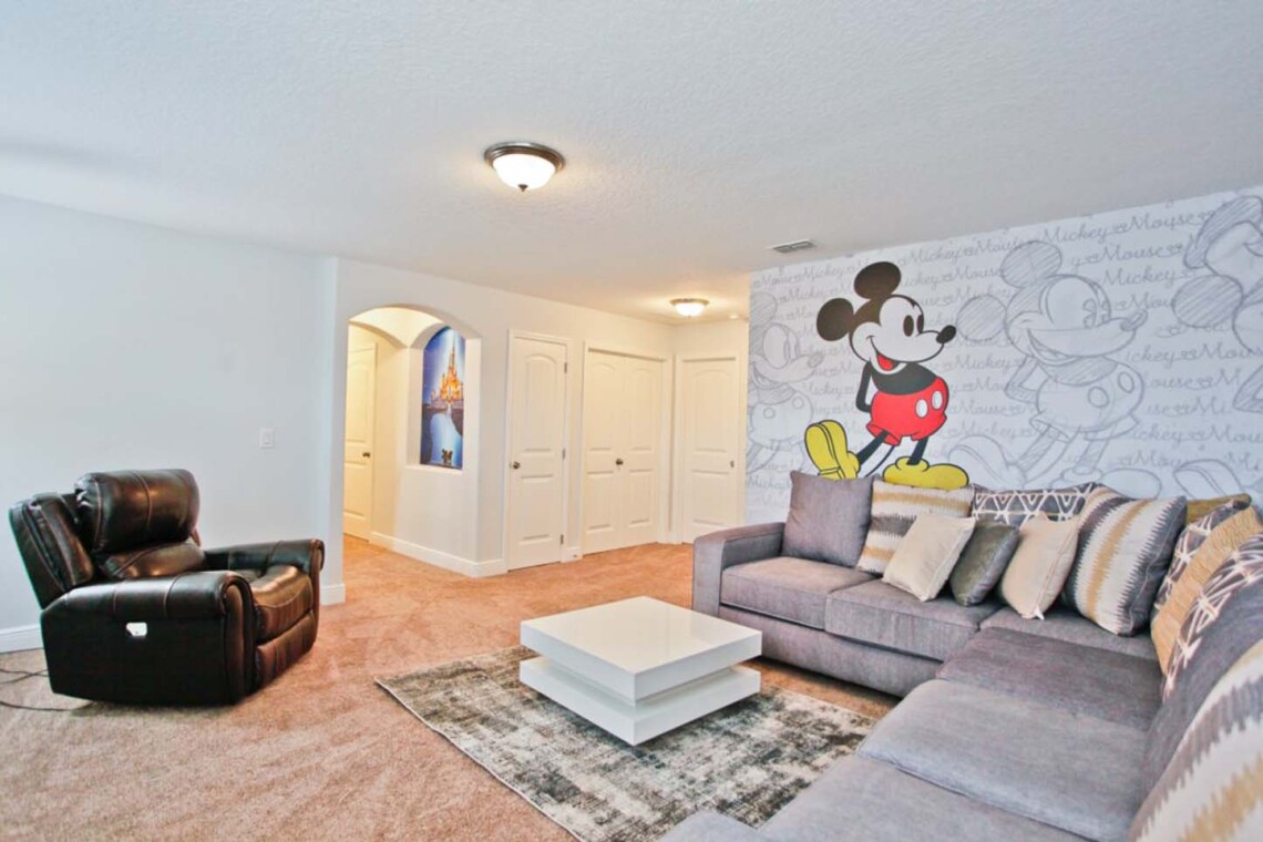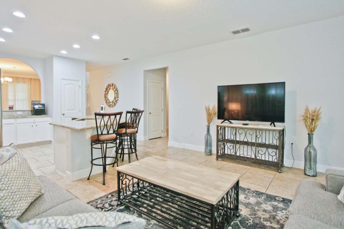 Spacious family home in Solterra Resort with private screened pool & spa, game room, and two living areas (main floor + upstairs loft with large sectional and TV).